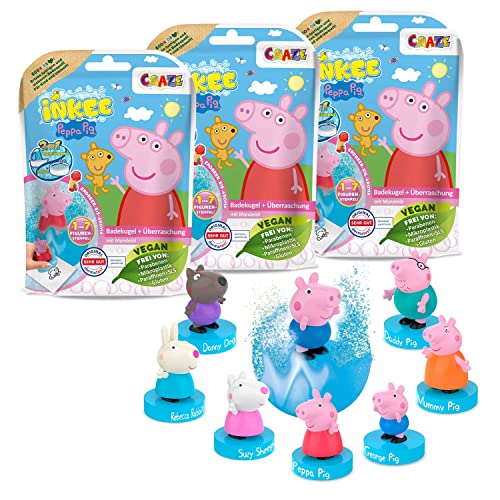 Craze Inkee Surprise | Set om 3 Peppa Gris-badbollar för barn med överraskning, Peppa Gris-leksak för badkaret, med jordgubbsdoft och skumeffekt