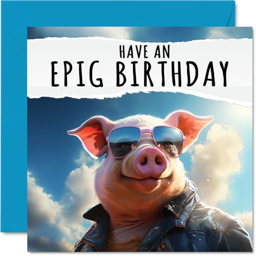 Gris födelsedagskort för kvinnor män – EPIG – djur 145 mm x 145 mm gratulationskort, födelsedagskort för mamma pappa syster bror dotter farbror faster Bestie arbete kollega vän roliga födelsedagskort