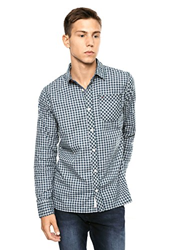 Tommy Jeans Herr Orby Check Skjorta L/S Casual, Blå (Grisaille 903), XL