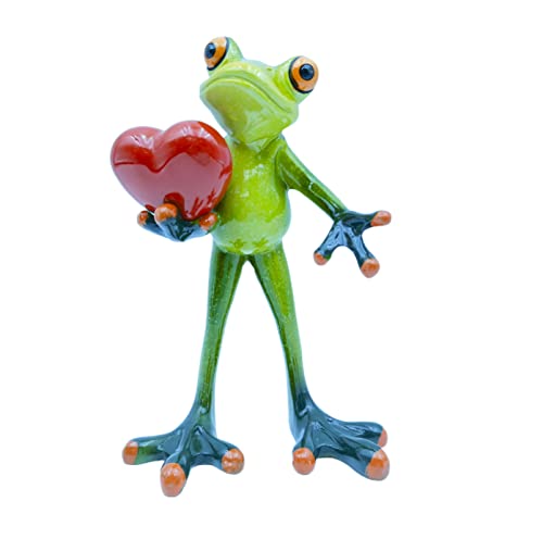 VVGIFTS Groda figurer dekor rolig kreativ hantverk harts groda skulptur staty för hem kontor skrivbord bord badrumsdekoration, prydnad gåva (groda som håller hjärta)