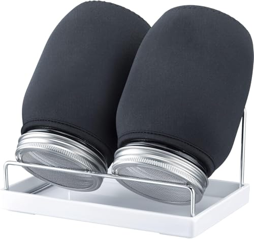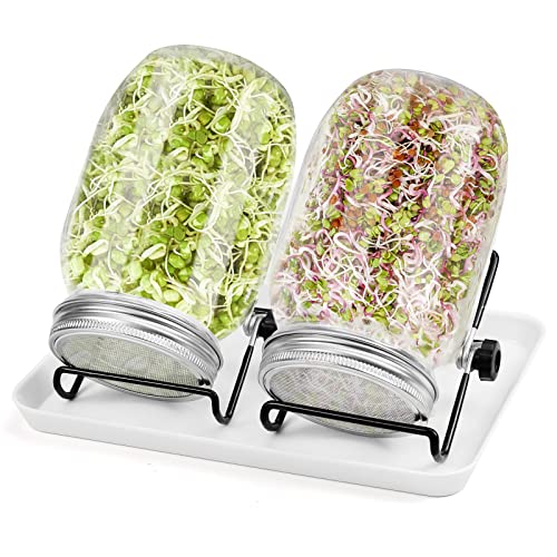 MOYKSRR Groddburk set om 2, Groddburk Groddburk, 1000 ml Groddburk för Grodd med 1 Bricka, 2 Justerbara Hållare, 2 Mörkläggningslock, 2 Filtergaller av Rostfritt Stål, 1 Borste