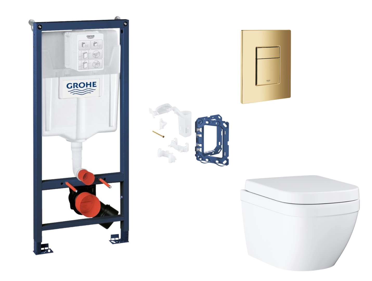 Grohe Rapid SLX - Set med skottinstallation, toalett, SoftClose-sits, Skate Cosmopolitan-knapp och sats för tablettinsats, Cool Sunrise SANI11BB4151
