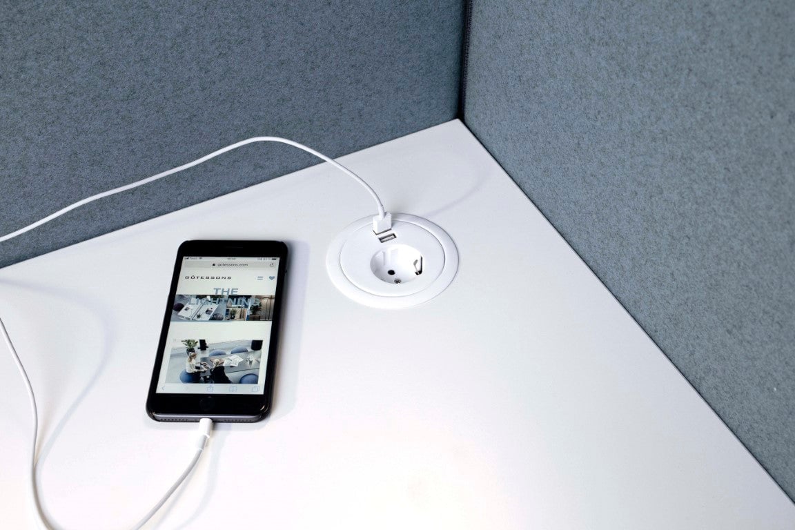 Götessons Max Power Grommet Utländska uttag 1 DK EL USB A C LADDNING721503-1-DK vit B:94 D:85 Ø:94