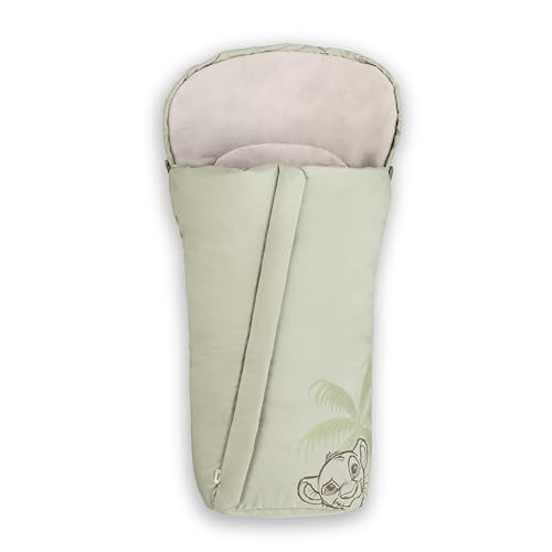 hauck Disney universell åkpåse för vagnar och cykelsläpvagnar, varm fleece, enkel installation med 5-punktsrem, halkskydd, tvåvägs dragkedja, maskintvättbar, vikbar (Simba Olive)