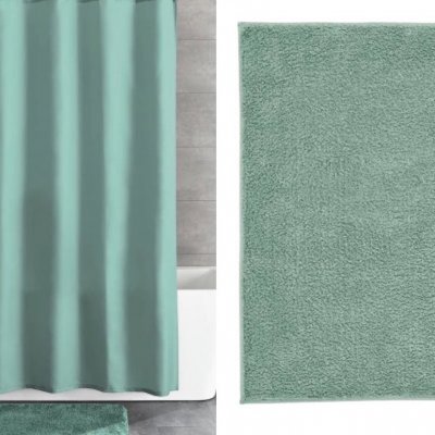 Paket: Vita badrumsmatta/Rica duschdraperi grön