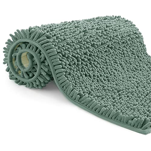 MSV Badrumsmatta badrumsmatta duschmatta chenille hög lugg badrumsmatta 40 x 60 cm – grön