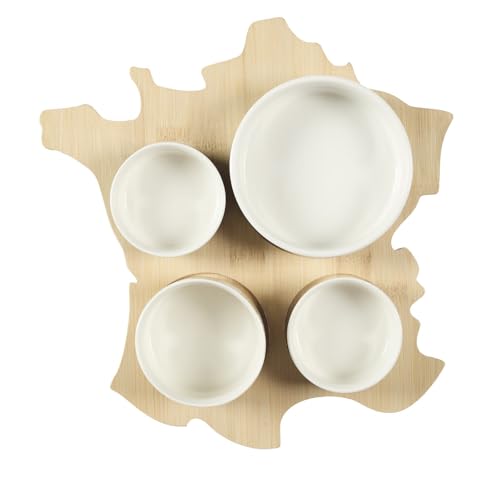 COOK CONCEPT, KA0658, Aperitiftavla i trä över Frankrike med 4 porslinsskålar - Originalpresentidé för gastronomer - Storlek: 28 cm - Färg: Beige, Grön, Vit, Svart