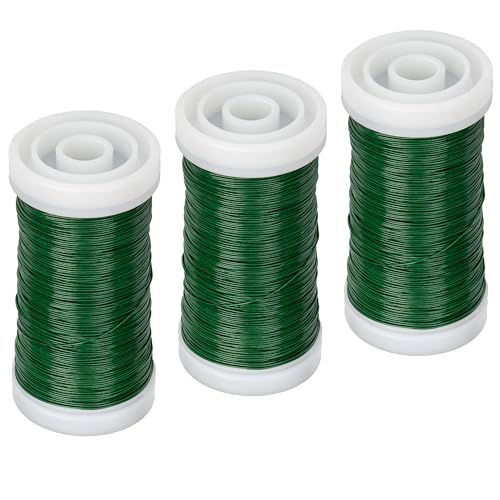 ECENCE 3x glödgad Myrtetråd av järn i färgen Grön, hantverks- och blomtråd, lindningstråd, bindtråd per rulle 60m
