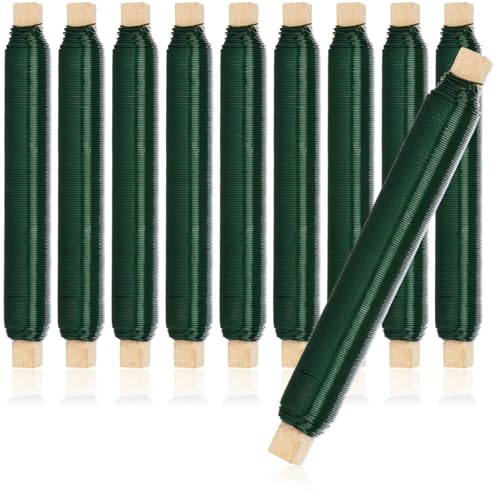 COM-FOUR® 10x blomtrådsset, grön bindtråd lindad på en träpinne, tjocklek 0,65 mm, 1000 g