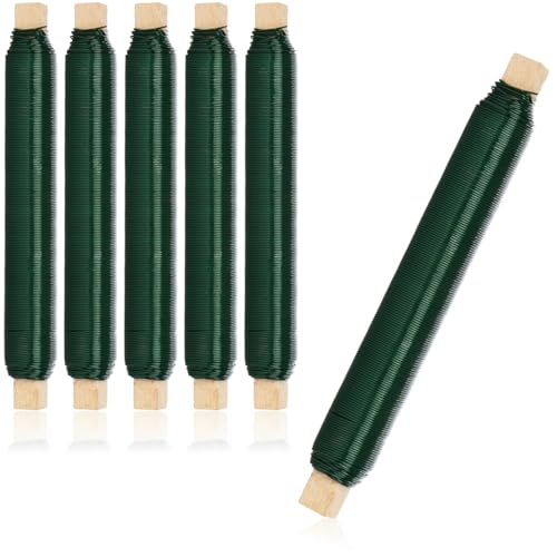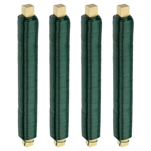 ECENCE 4x förzinkad blomtråd, 0,65mm tråd på träspole, blomtråd för fixering av blommor och växter, bindtråd trädgård 35m Färg Grön