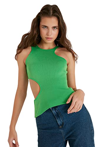 Trendyol Dam Slim Fit Bodycon Halterneck Stickat Blus, Grön, M, gRÖN, M