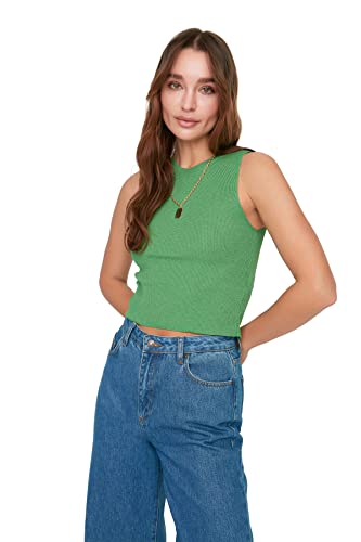 TRENDYOL Dam rund krage cancer stickad blus, Grön, M
