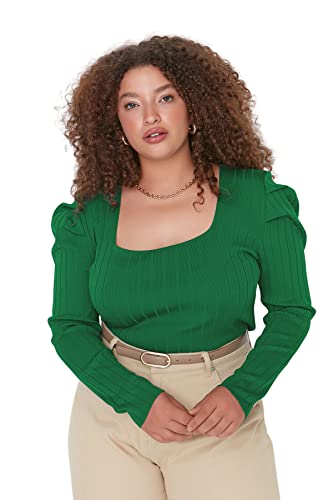 Trendyol Dam plusstorlek figursydd fyrkantig krage stickat plusstorlek blus, gRÖN, XXL Plus