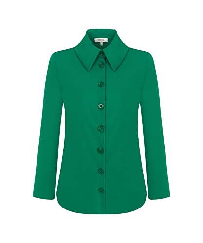 Irevial Lång blus dam oversize skjorta bomull button down långärmad tröja lös skjorta fritid skjorta blus, Grön + svart-2, M