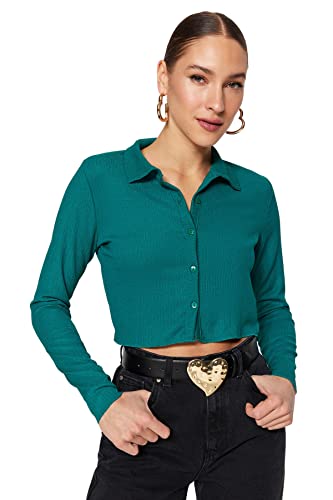 TRENDYOL Dam förtrollande normal passform basic hjärtmotiv urringning tyg blus, Grön, 34
