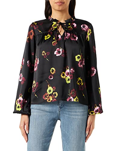 KAFFE dam blus tröja frilled hals långärmad tryckt, Svart djup/grön blomstertryck, 34