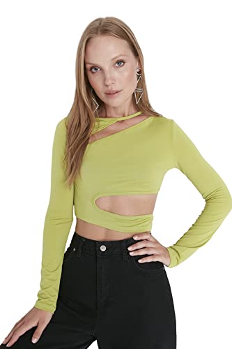 TRENDYOL Dam rund krage cancer stickad blus, Grön, S