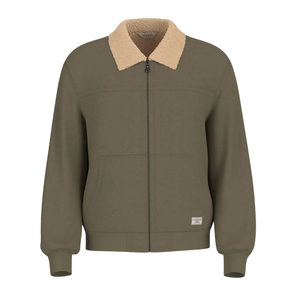 Guess, Jackor , Herr, XL, Grön Bomberjacka med Kontrasterande Krage