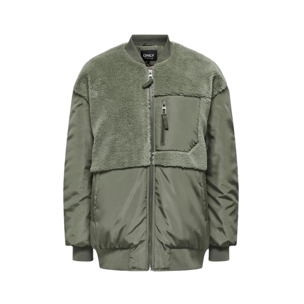Only, Jackor , Dam, S, Polyester, Grön Fleece Mix Bomberjacka