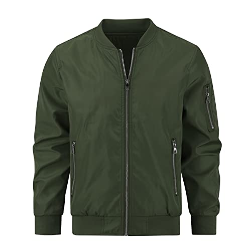 YOUTHUP Herrjacka, lätt övergångsjacka med ärmficka, sommarjacka, normal passform, fritid, bomberjacka, Grön, M