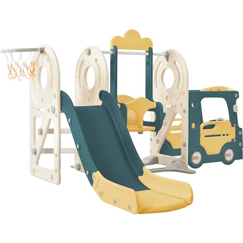 Baby rutschkana och gunga för barn fristående rutschkana aktivitetscenter för lekplats utomhus lekset lång lekutrustning (buss grön)