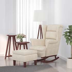 vidaXL Gungstol med träben och fotpall gräddvit sammet 3121239