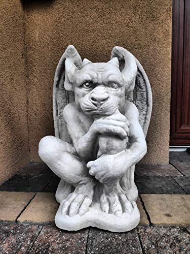 Green Lane Garden Figur av sittande gargoyle, gjord av gjuten sten, utomhus/inomhusprydnad, dekoration