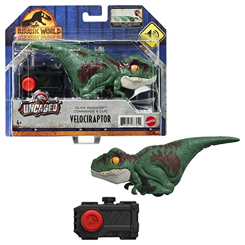Jurassic World GYN41 - "A New Age" Velociraptor dinosaurie, grön, stiliserad figur, interaktiva rörelser och ljud, klickkontroller, dinosaurieleksak för barn från 4 år
