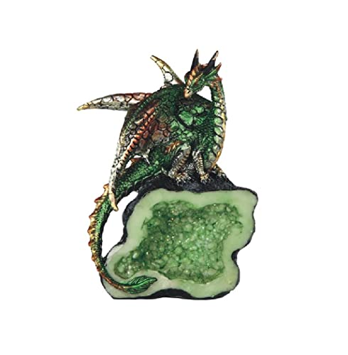 ICE ARMOR 14 cm H grön drake på grön fuskkristall sten staty fantasi dekoration figur