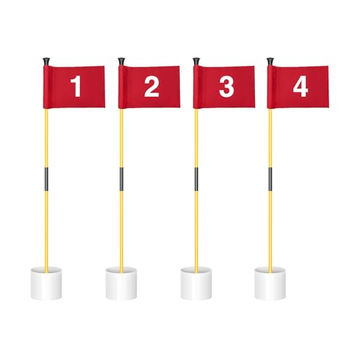 KINGTOP Miniatyrgolfflagga, övningssätta gröna flaggor för gården, golfpin flagga hål kopp set, bärbar 2-sektionsdesign, 9 fot flaggstång, inomhus | utomhus, röd flagga numrerad #1 2 3 4, 4-pack