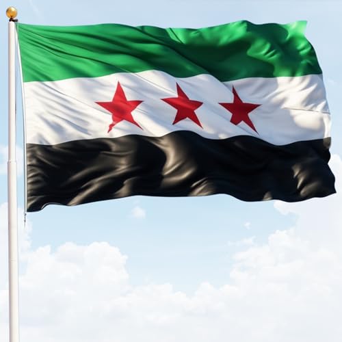 Syrien flagga - علم الثورة السورية, Syrien Revolution flagga med grön, vit, svart och röda stjärnor, Syrisk, perfekt för patriotiska evenemang, dekorationer