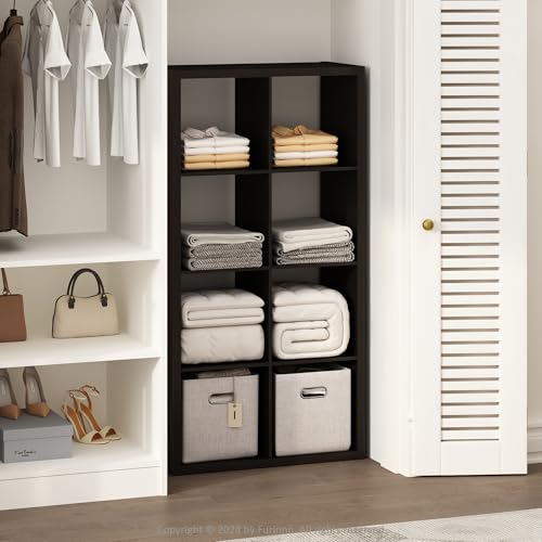 Furinno Kubisk garderobsorganisatör och förvaring, 8-kubers garderobsorganisatör, öppen hylla garderobsförvaring, extra tjock ram för garderob, sovrum, vardagsrum, mörk ek