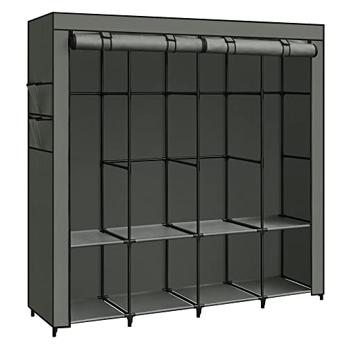 SONGMICS Garderob av kläder, bärbar tyggarderob med 4 hängstänger, hyllor, 4 sidofickor, 45 x 170 x 167 cm, Rymlig för sovrum, vardagsrum, Grön Oliv RYG094C02, Olivgrön