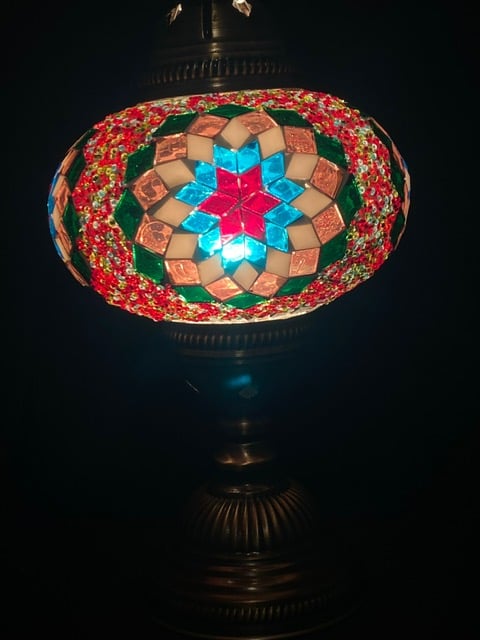 K366 Kupa med glasmosaik Röd/grön/ljusblå