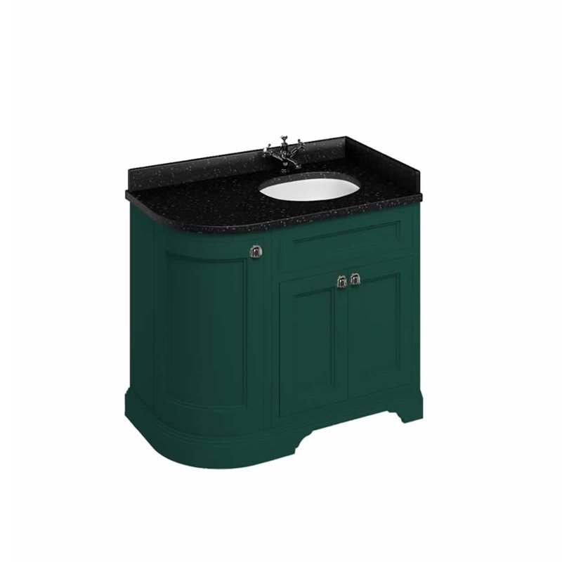 Burlington Kommod, Runda Hörn & Luckor 100 (Matt grön/Minerva Carrara Svart Granit & handfat/Vänster)