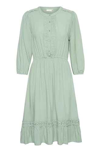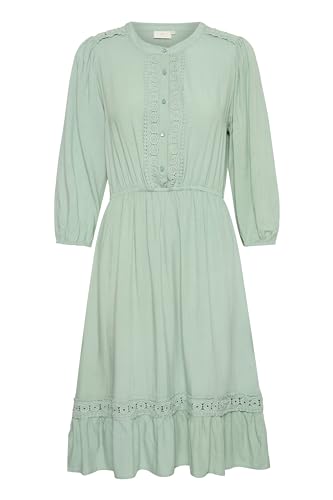 KAFFE Damklänning 3/4 ärmar spets Crew Neck Buttons Knee-Length elastisk midja, Granit grön, 38