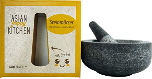 JADE TEMPLE Stenmortel med mortel i set, effektiv och enkel mortel, tillverkad av massiv granit med en diameter på 18 cm och 8,5 cm höjd