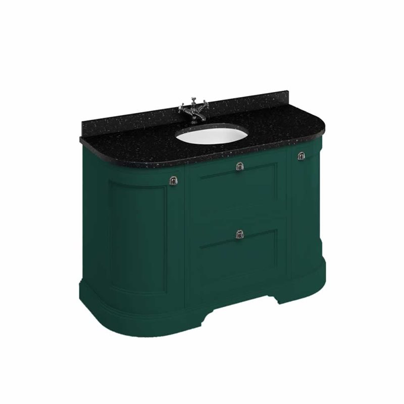 Burlington Kommod, Rundade Hörn 134 (Matt grön/Luckor & lådor/Minerva Carrara Svart granit & handfat)