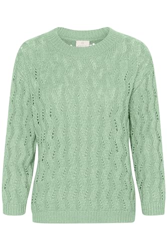 KAFFE Kvinnors tröja med mönster stickad beskuren ärm rund hals vanlig passform, Granit grön, L