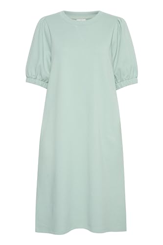 KAFFE Kvinnors casual klänning halvärmar rund hals knälängdsfickor, Granit grön, XS