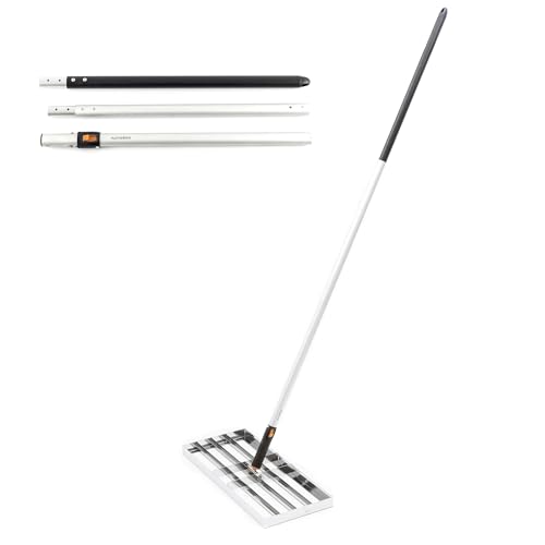 HomeBee Gräsmatta 60 x 25 cm – praktisk gräsmatteskrapa för en rik grön gräsmatta, inklusive 2 meter skaft, nivelleringshark för gräsklippning, bred sandgräsmattekratta