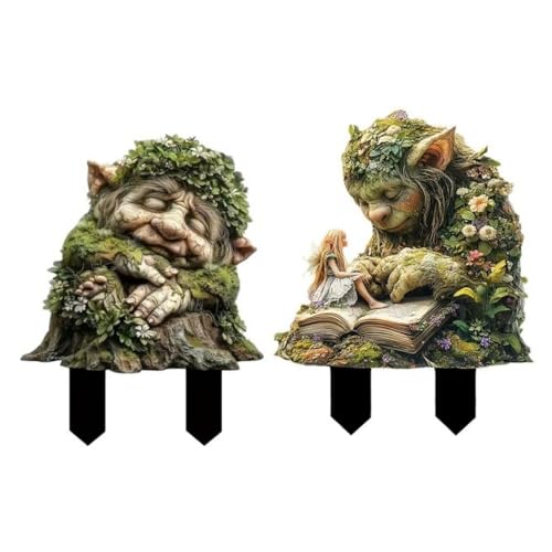 2 st 2D grön gräsmatta troll trädgårdsdekoration för utomhusbruk, ventilerande trädgårdsornament, dekorativa skulpturer för trädgårdar, uteplatser, 23 x 30 cm