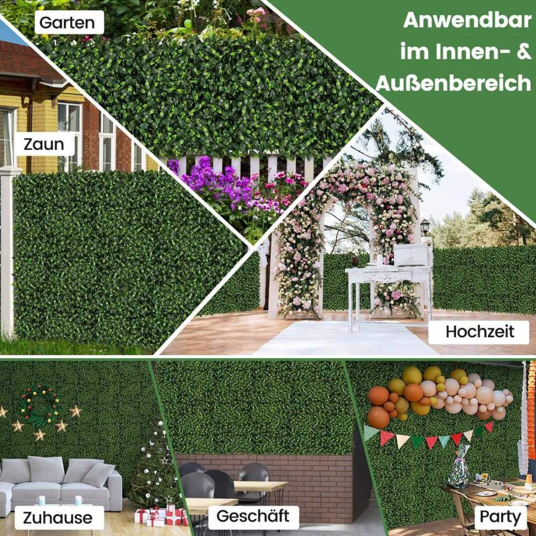 uyoyous 12 stycken konstgjorda växter 40 x 60 cm, gräshöjd 10 cm grön insynsskydd gräsmatta växtvägg, realistisk och frodig murgröna, trädgård, insynsskydd, dekoration för vägg, balkong, trädgård och