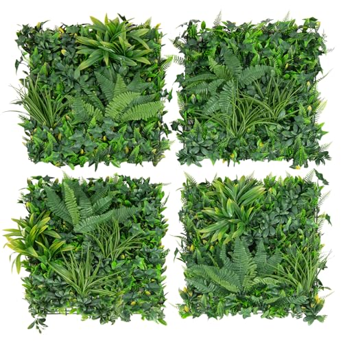 COSTWAY 4 stycken konstgjorda häckar växtvägg, 50 x 50 cm, paneler med olika blad, simulerad gräsmatta konstgjord växt, konstgjord växt väggväxt, för vägg balkong trädgård, grön