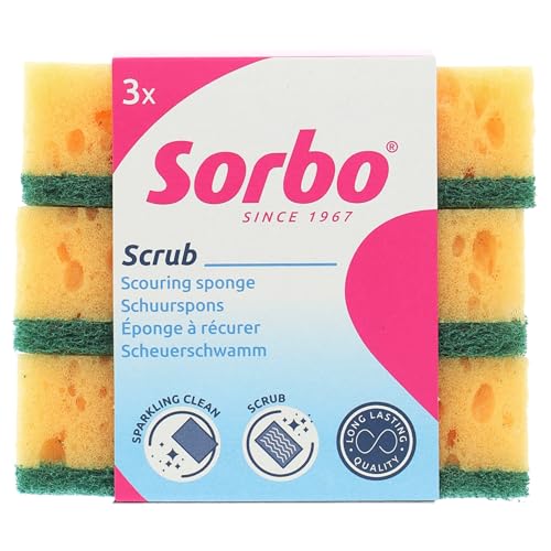 Sorbo skursvampar – set om 3 – tung kvalitet – extra stark och hållbar – för envis smuts – kök, stekpannor, bakplåt, grill – grön skrubbningssida – återanvändbar