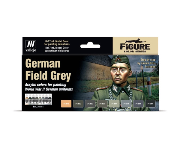 Vallejo 70.181, 17 Ml, Svart, Hud, Grön, Grå, Oliv, Matt, Flaska