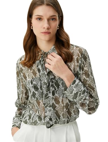Koton Dam orm hud ruffle långärmad chiffongblus, Grön design (7d5), 40