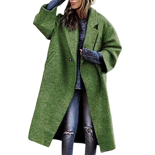 Vinterkappa dam lång elegant långärmad nedvikbar krage enfärgad trenchcoat cardigan med slag krage casual solid färg jackor lös elegant kappa dam vinterjacka ytterkläder, Grön, S