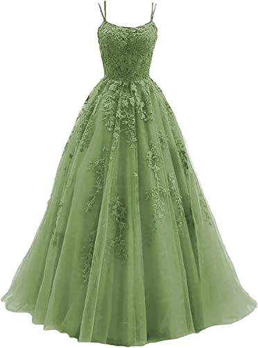 Beyonddress Damspetsapplikationer, aftonklänningar, balklänningar, lång spaghettiband, tyll, formell klänning för fest, Gräsgrön, 32 SE