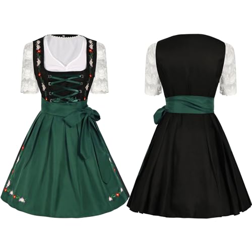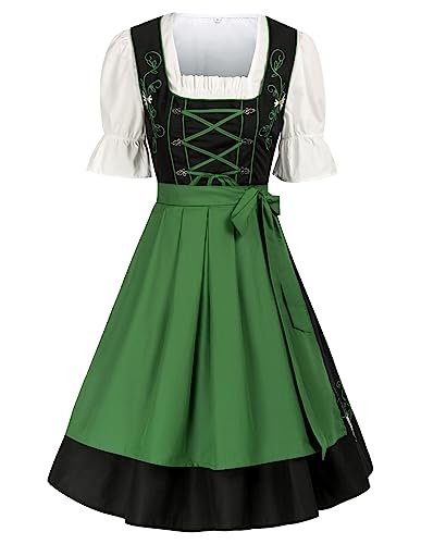 JASAMBAC Dirndl dam, 3-delad, Oktoberfest, dirndl-traditionell klänning, dirndl-klänningar, karneval, oktoberfest, fest, kostym, Grön, XXL